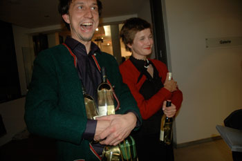 Ich nehme wohl nicht zuviel vorweg, wenn ich verrate, daß im Zentrum der Ausstellung in den Räumen des Österreichischen Botschaft das Motiv der Gabe steht. Und damit möchte ich auf das erste der angekündigten Gastmähler zu sprechen kommen. Platons Symposion ist sicherlich das Vorbild aller Gastmähler, das auch uns heute als Nachfolger zusammenführt. Von Platon wird nun jene Zusammenkunft überliefert, die im Hause des Agathons Philosophen und Staatsmänner zum gemeinsamen Genussverzehr versammelt. Die Teilnehmer, unter ihnen Sokrates, sind noch sichtlich gezeichnet vom Gelage der vorigen Nacht, und so entschließt man sich, dem Genuß von Wein aufs weitere zu entsagen. "Überlegt also", so spricht der ebenfalls anwesende Pausanias, "auf welche Weise wir am behaglichsten trinken mögen".[1] Was aber machen Philosophen, wenn sie sich nicht dem "Wettkampf im Trinken" widmen? Sie huldigen dem Eros, ausgeführt als Rede-Wettkampf. Folgt man Friedrich Kittlers Gedanken „Vom Griechenland“, dann erscheint hier die prosaische Rede über die Liebe als Leerstelle einer Poesie des Rausches und alles, was der Rausch nicht leistet, übernimmt nun das Reden über den Eros. Nur so kann es kommen, daß alles europäische Rede über die Liebe mit verkaterten Männern beginnt.[2]
