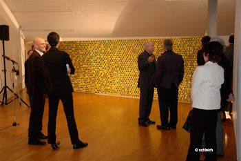 Durch die Akkumulation von seriell hergestelltem Material, auch durch die pragmatische Ausführung der Installation unterwandert Jochen Traar die Funktion der Autorenschaft. Anders als beim künstlerischen Unikat gibt es beim Multiple keinen eindeutigen Verweis auf einen Ursprung, vielmehr handelt es sich um eine horizontale Befragung des "Immer Gleichen". Für das Multiple ist eben nicht entscheidend, ob der Künstler einzelne Partikel selbst gefertigt hat oder ob er sie produzieren lässt. Jochen Traars Ausstellung in der Österreichischen Botschaft demonstriert das in mehrfacher Weise: Der Künstler wird zum Programmierer eines Werkes, das durch seinen offenen Ausgang bestimmt ist. Die Autorenschaft bleibt selbst eine multiple und das Werk erreicht seine Vollendung nicht schon durch die Setzung des Künstlers, sondern in der soziale Interaktion mit dem Publikum.Und so möchte ich mit einem Zitat von Joseph Beuys schließen: „Wenn Ihr alle meine Multiples habt, dann habt Ihr mich ganz“.